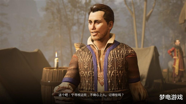 临走前我们要和他谈好条件,不能被白嫖,而且在进去探索后要拿走他的武器。但是需要8点洞察,之前如果做了好心人家里的任务这个时候身上会有3个属性加点,刚好可以应付得来。很快我们就会被他背刺,那么之前拿到的武器算是没有白来一趟,关我们的屋子里还有个加力量的酒,也不亏。后续还会见到他,之前谈到的钱也都能要回来。