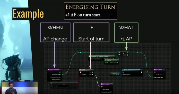比如你想做“回合治疗”功能,你只需把效果改成“治疗”,它就会在回合开始时治疗角色。这看起来很容易,实际上也确实如此。但这背后是工程师们在底层做了大量工作,才让这一切变得易于理解并且有效。