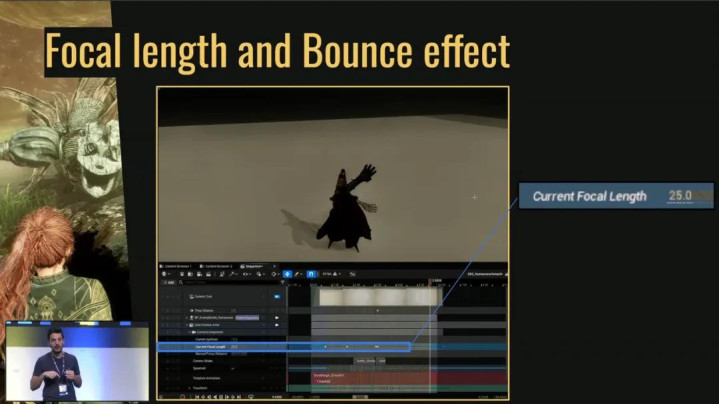 我们还利用焦距(Focal Length)和“回弹效应”来预告敌人的攻击,帮助玩家直观判断攻击时机。例如攻击时,镜头会先拉远再推近,并附带一些“时间膨胀”效果,在攻击前短暂慢动作,提示玩家“攻击要来了”。虽然不确定是否真的有效,但测试中没有发现负面影响,我们就保留了。