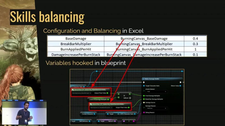 我请工程师做了一个数据表,里面存放了我们所有Excel里的平衡变量。我们在蓝图里手动引用它们一次。一旦设置好了,我就可以在Excel里修改所有东西,重新导出,然后游戏里的一切都同时更新了。这让我们可以进行大规模的批量修改。