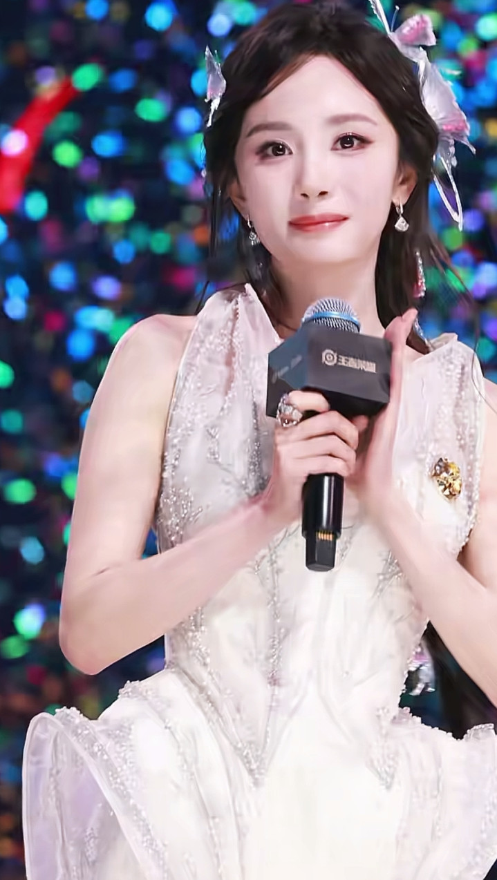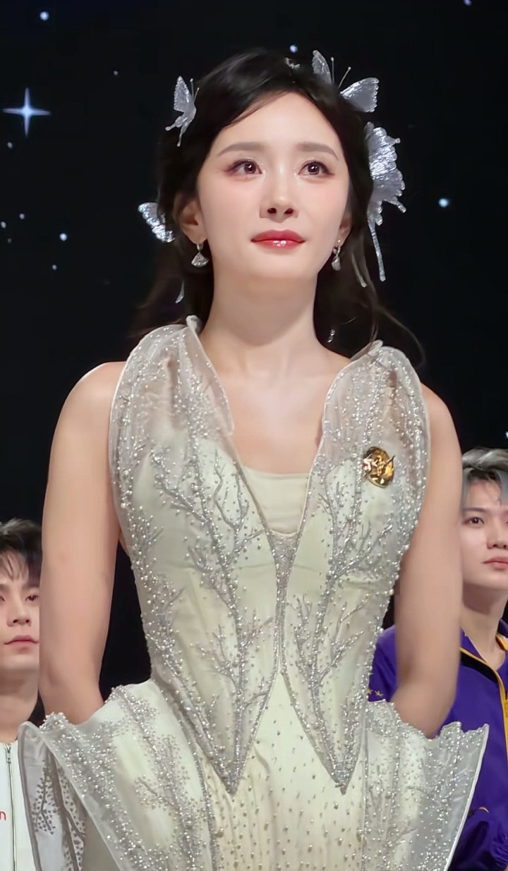 39岁杨幂眼睛水灵灵的, 她太适合精灵的妆造, 状态也越来越好了