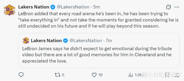 詹皇感激骑士致敬之爱: 不确定下赛季还会征战! 铁林分析大概率退役